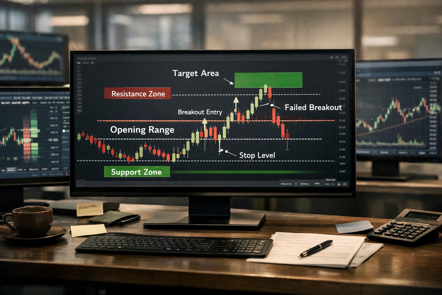 A futures trader marks the daily prior high, prior low, overnight range, and the 60-minute balance area before the open. At this point the trader should be able to name the location, the condition that still makes the setup valid, and the line that would cancel it.
