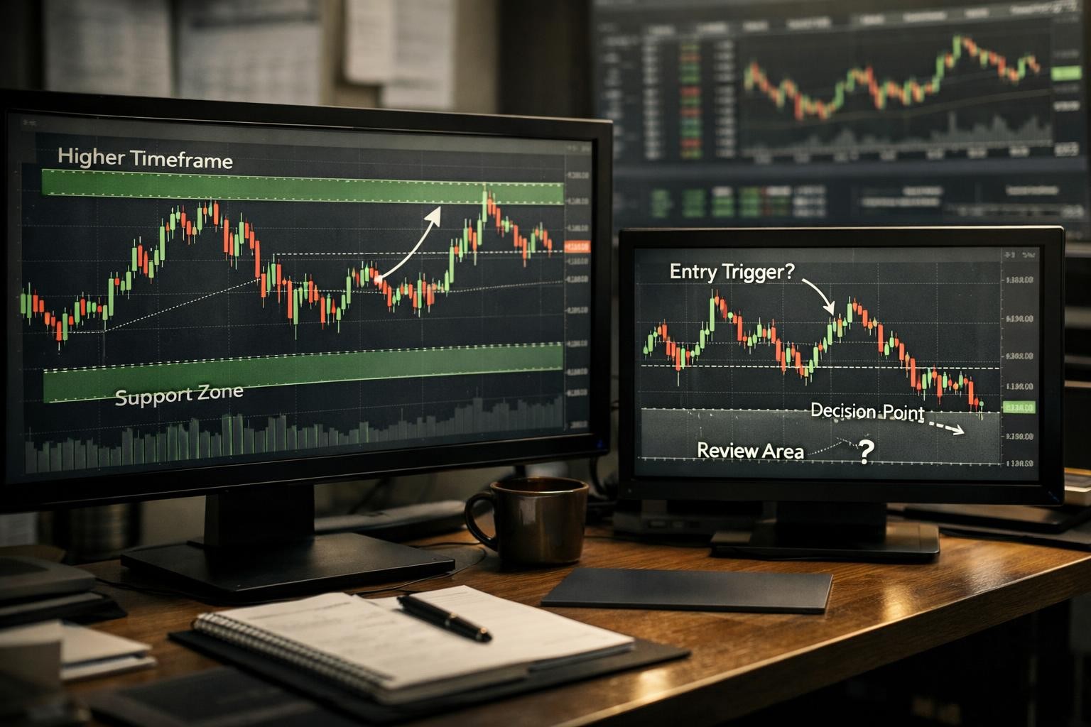 Why it matters: Higher timeframes define location; lower timeframes refine entry, stop placement, and timing