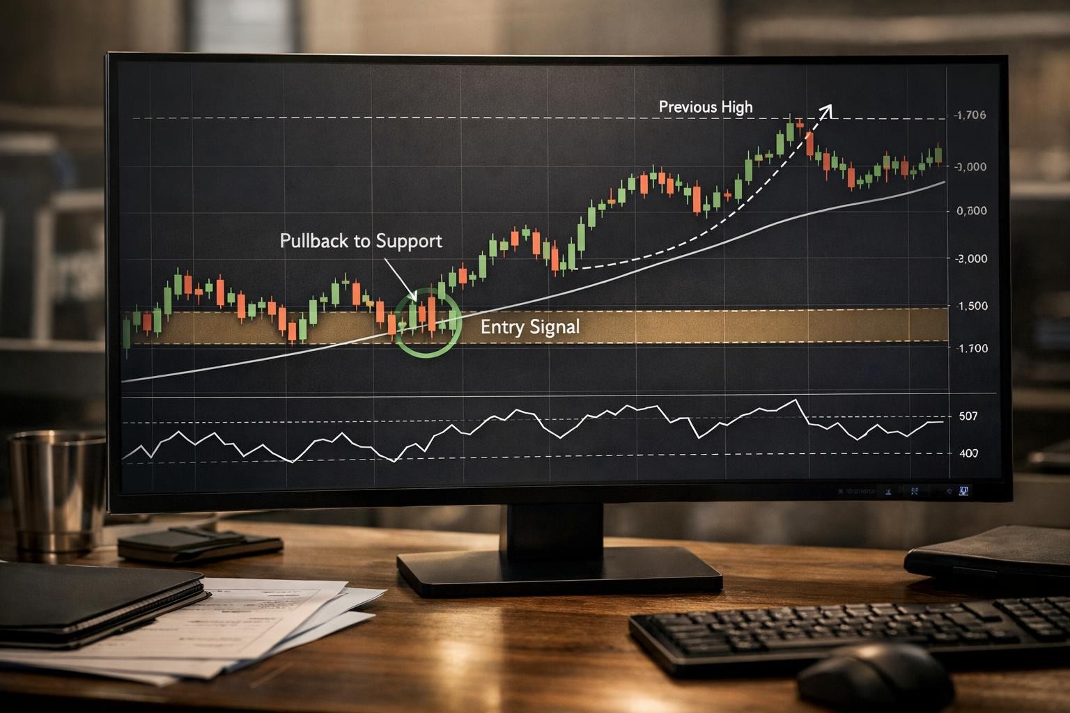 The best pullbacks often return to a clear decision zone: prior breakout area, support, VWAP in a trend day, or a moving average the trader actually uses consistently. If the trader cannot point to this condition before entry, the setup is still too loose to trust.